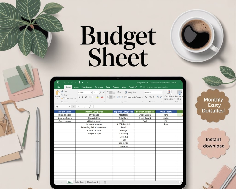 Project Budget Sheet Excel Template – Editable Business & Personal Budget Planner