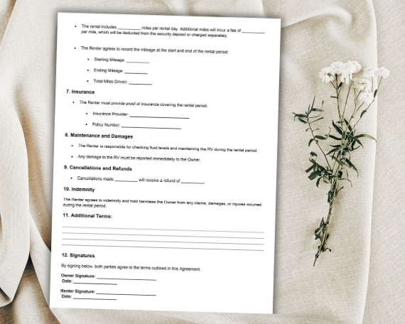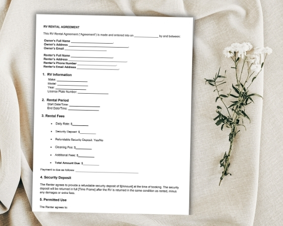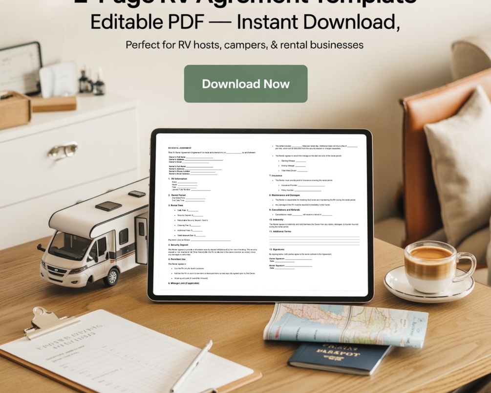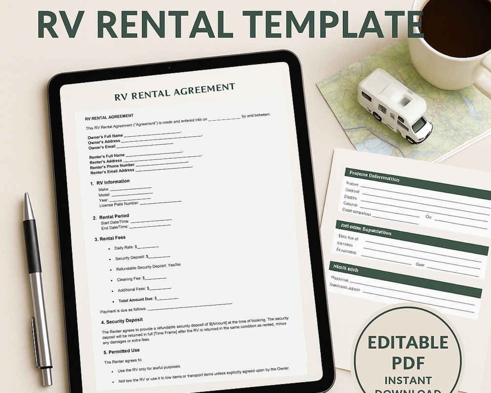 RV Rental Agreement Template Editable Word Document (DOCX) Camper Lease Contract for Owners Instant Download